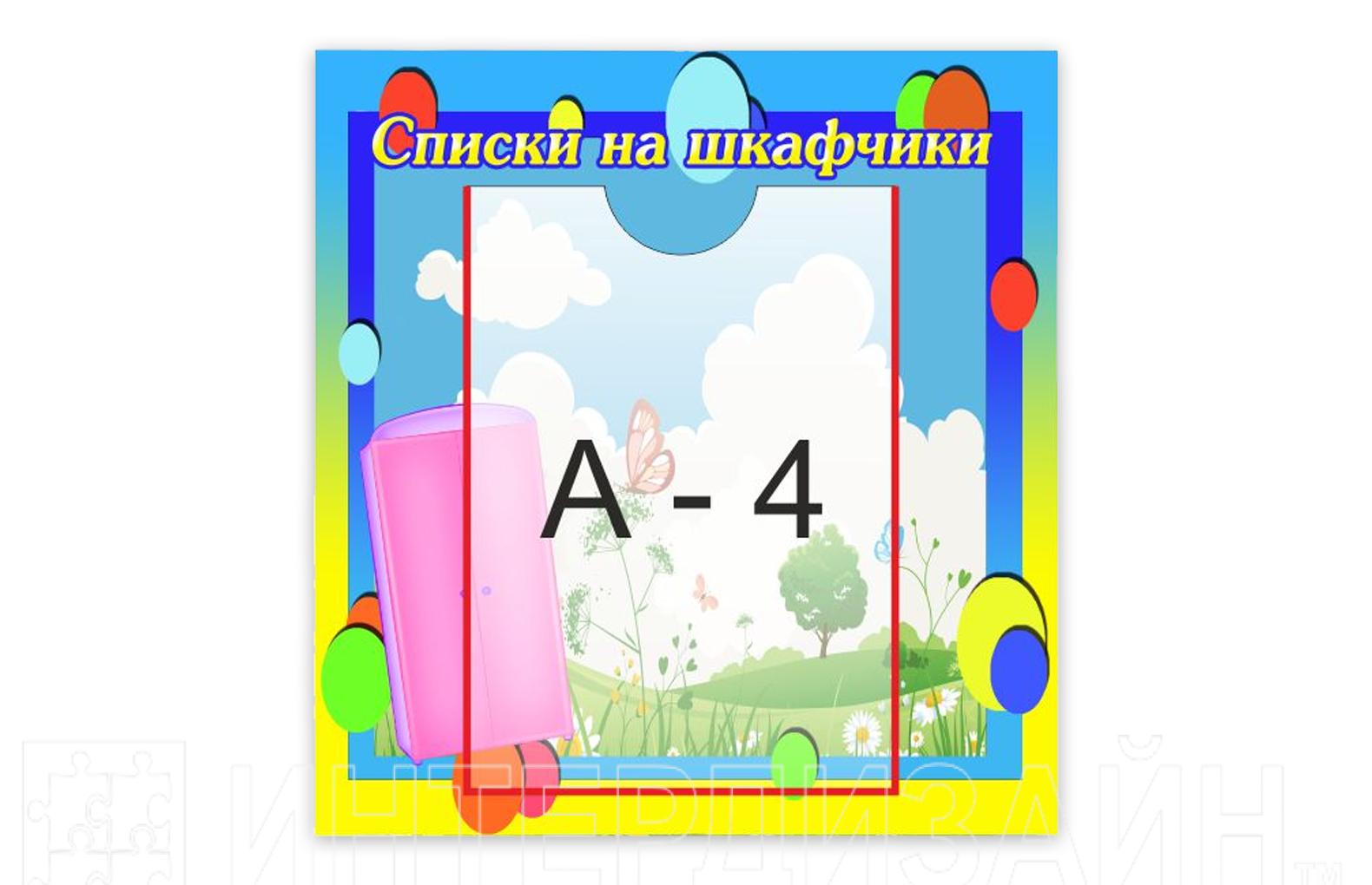 Стенд "Список на шкафчики" из набора "Кнопочки" для оформления группы в едином стиле. Материал основы стенда - пластик. Изображение - высококачественная печать с защитой от ультрафиолета. На стенде имеется карман А4.