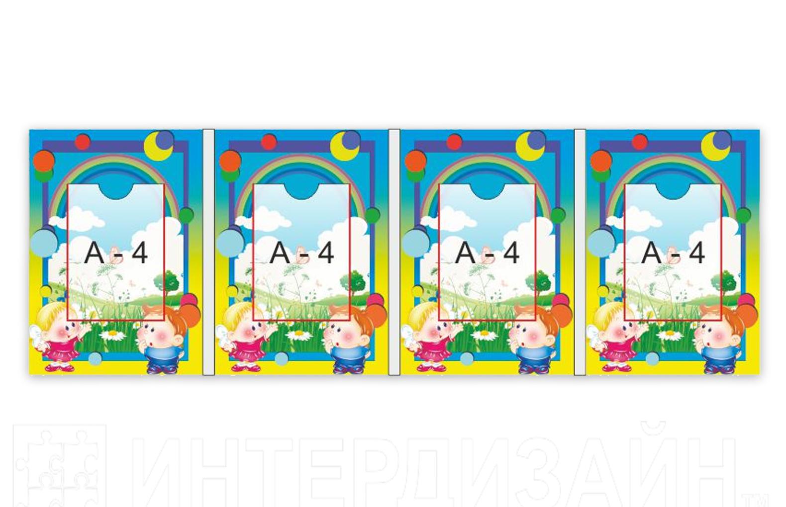 Стенд-ширма "Кнопочки" для оформления группы в едином стиле. Материал основы стенда-пластик. Изображение-высококачественная печать с защитой от ультрафиолета. Стенд состоит из четырех секций 303мм*428мм, каждая секция оснащена удобным карманом А4.