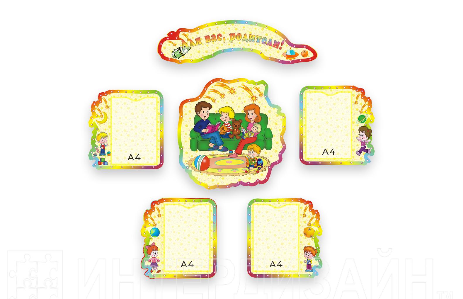 РазмерСтенд-шапка 69х19см, центр 46х47см, 4 кармана А4 33х35см