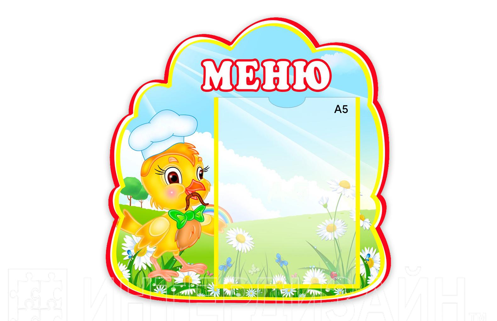 Стенд "Меню" из пластика с карманом А5. Изображение – УФ печать , (гарантированно не выгорает, не выцветает на протяжении 5 лет)