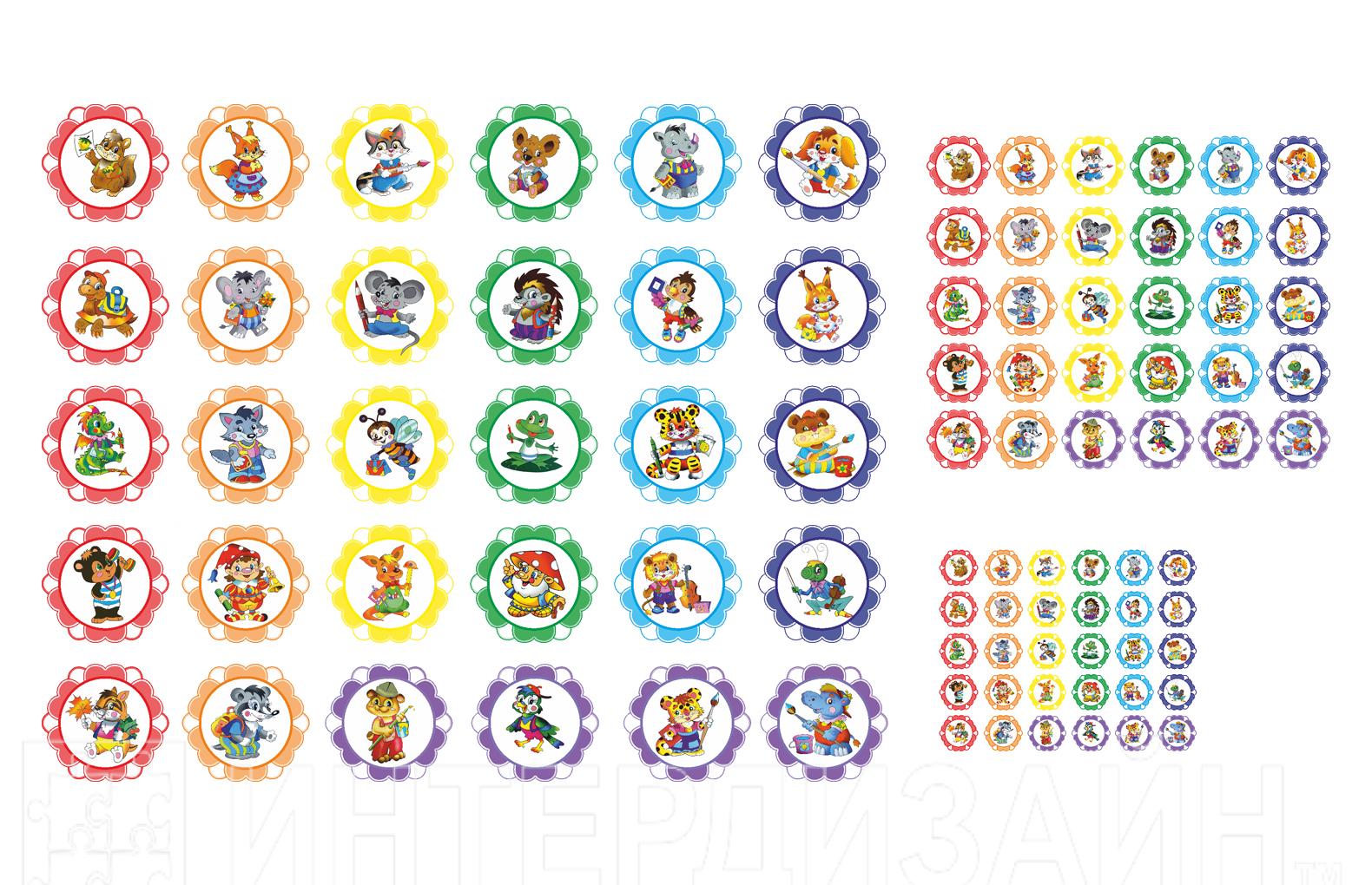 В комплекте 90 наклеек для шкафчиков, полотенец и горшков. Рассчитан набор на 30 детей.