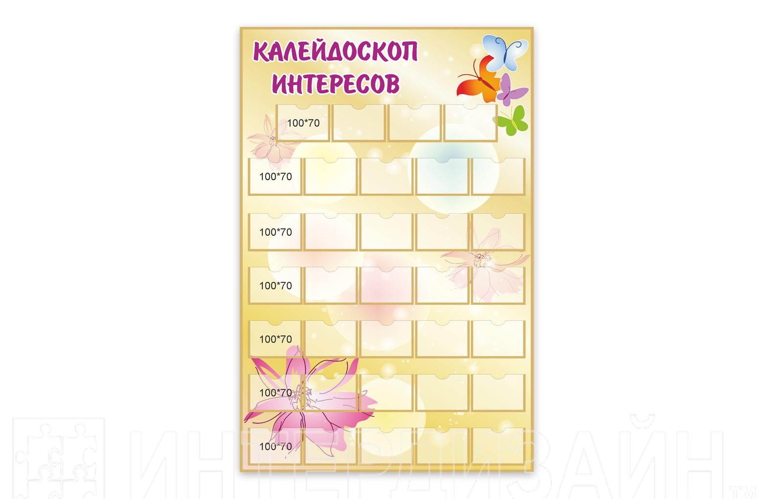 Стенд "Калейдоскоп интересов" (650х840мм) с 39 карманчиками (100х70мм) для размещения фото и карточек.