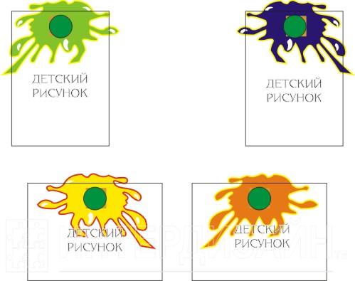 Изделие изготовлено из пластика ПВХ толщиной 3 мм. Изображение наносится на пленку или непосредственно на пластик. Дополнительно изделие оборудовано круглой металлической пластиной, к которой с помощью магнита прикрепляется детский рисунок.