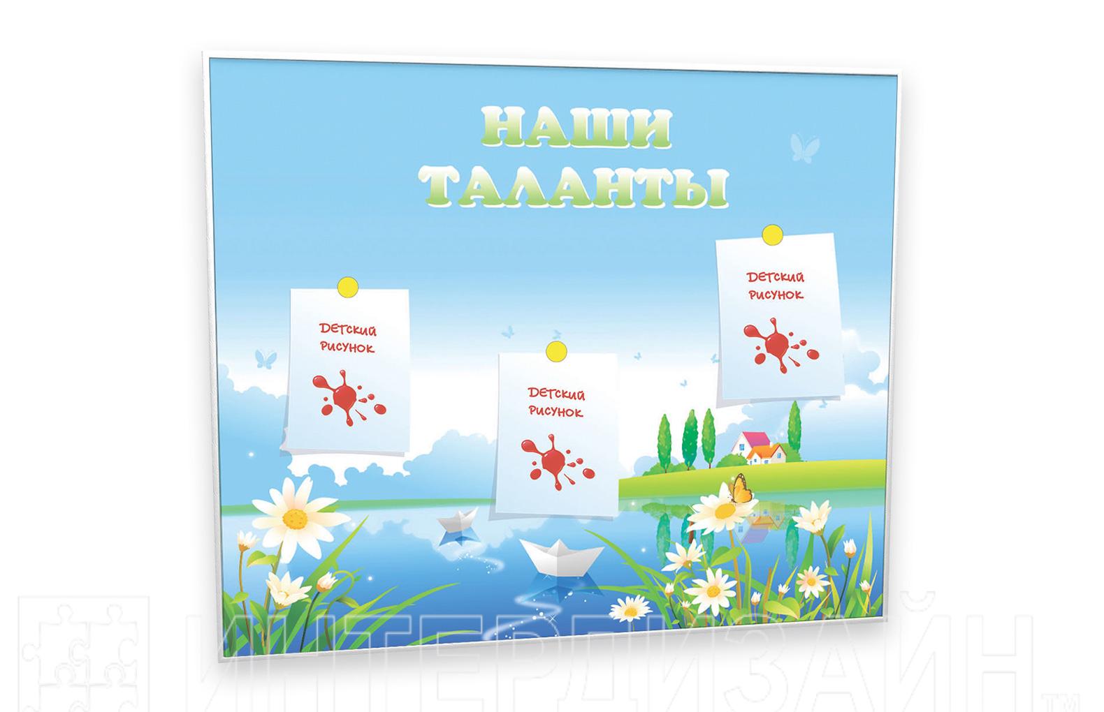 Красочная магнитная доска разработана специально для организации выставки детских работ. Работы юных художников легко крепятся при помощи магнитов.