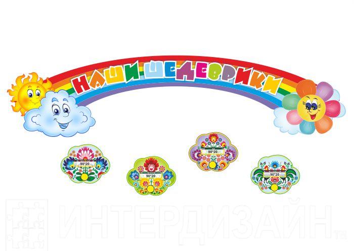 Каждый элемент данной композиции содержит полочку для поделки, крепление для рисунка и кармашек для фамилии ребенка.