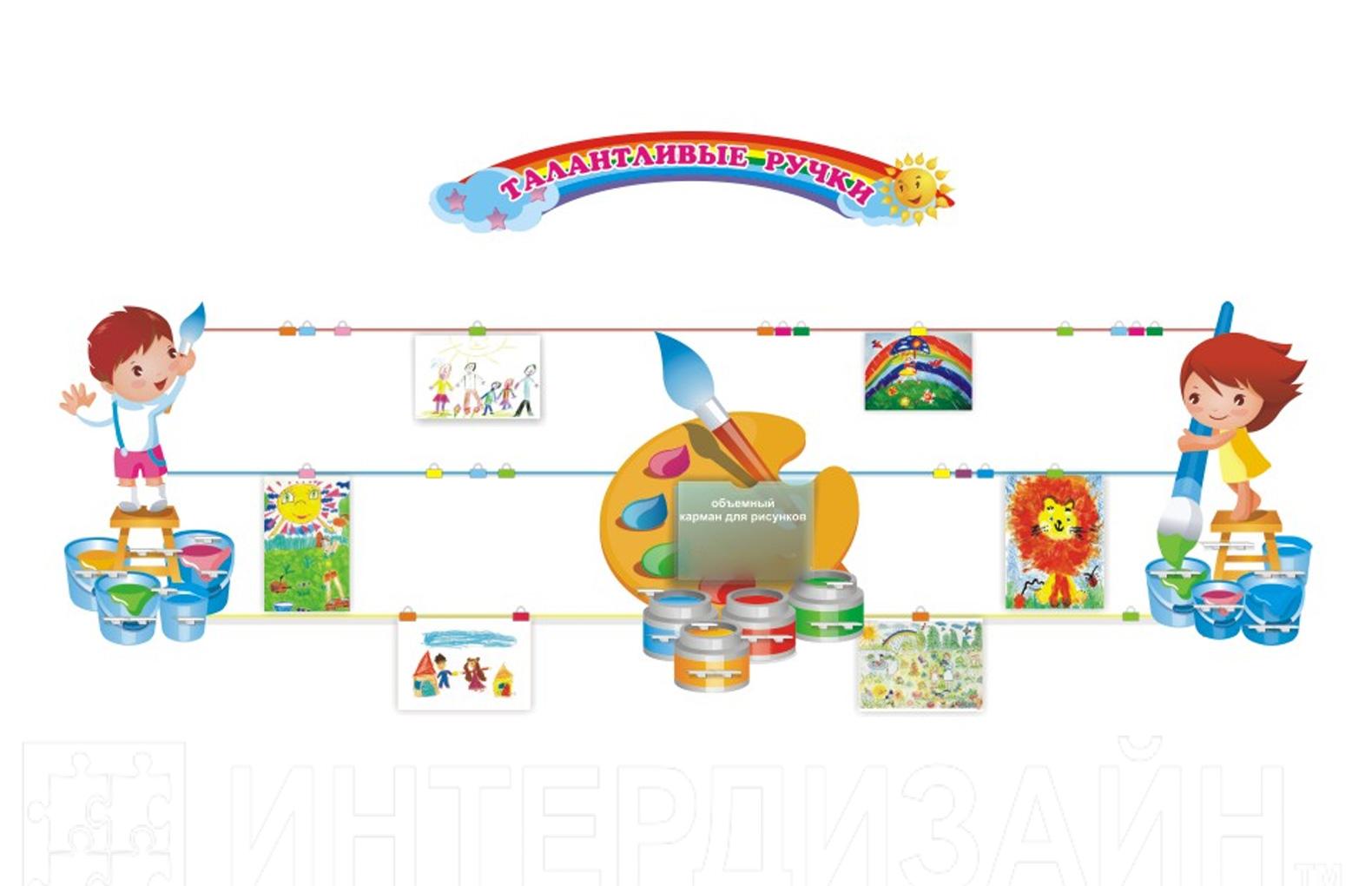 Многофункциональная композиция "Талантливые ручки" предназначена для создания выставки детского творчества.