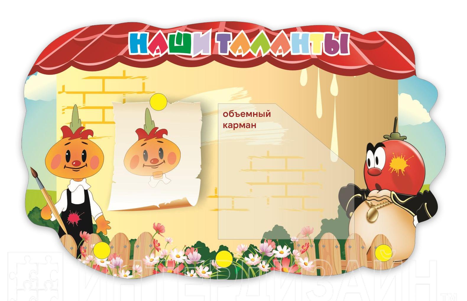 Стенд «Наши таланты» с объемным карманом на 30 рисунков и 3 магнитными точками из пластика ПВХ.