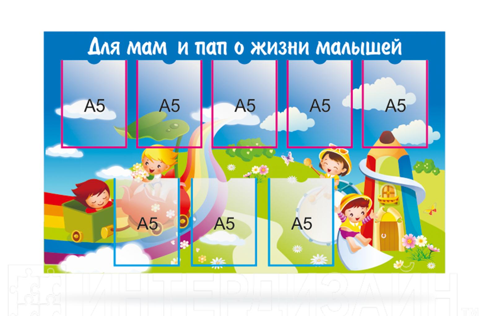 Стенд изготовлен из пластика пвх 3 мм, изображение - качественная печать с защитой от ультрафиолета. Оборудован 8 карманами А5 формата.