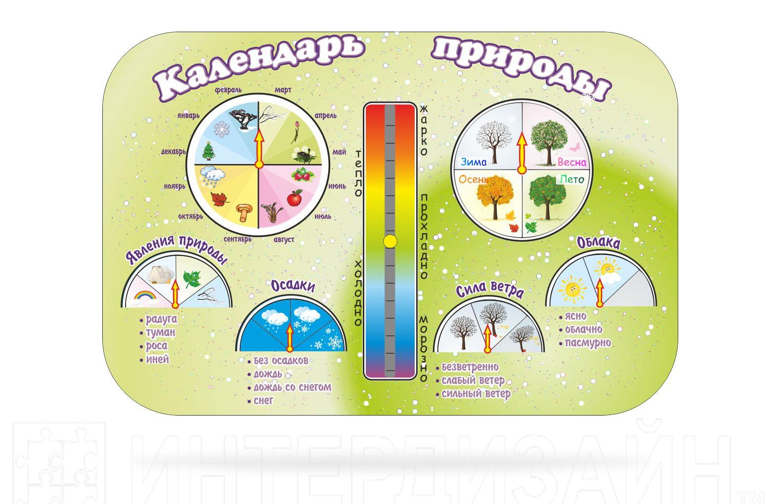 На данной модели расположен действующий градусник для изучения детьми температур воздуха. 6 вращающихся стрелочек для изучения времени года, месяцев и погоды.