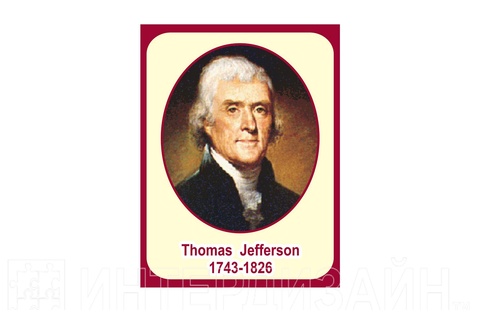 Стенд с портретом Томаса Джефферсона для оформления кабинета английского языка. Надмипи на портрете сделаны на английском. Стенд можно приобрести отдельно от полного комплекта оформления кабинета английского языка.