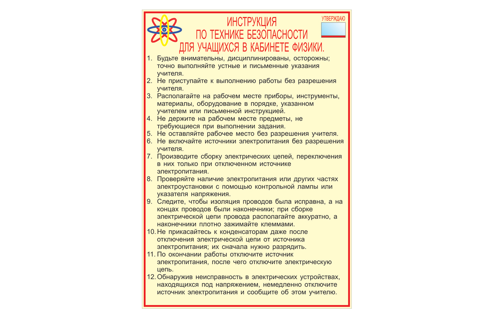 Стенд "Охрана труда в кабинете физики" из пластика толщиной 3 мм
