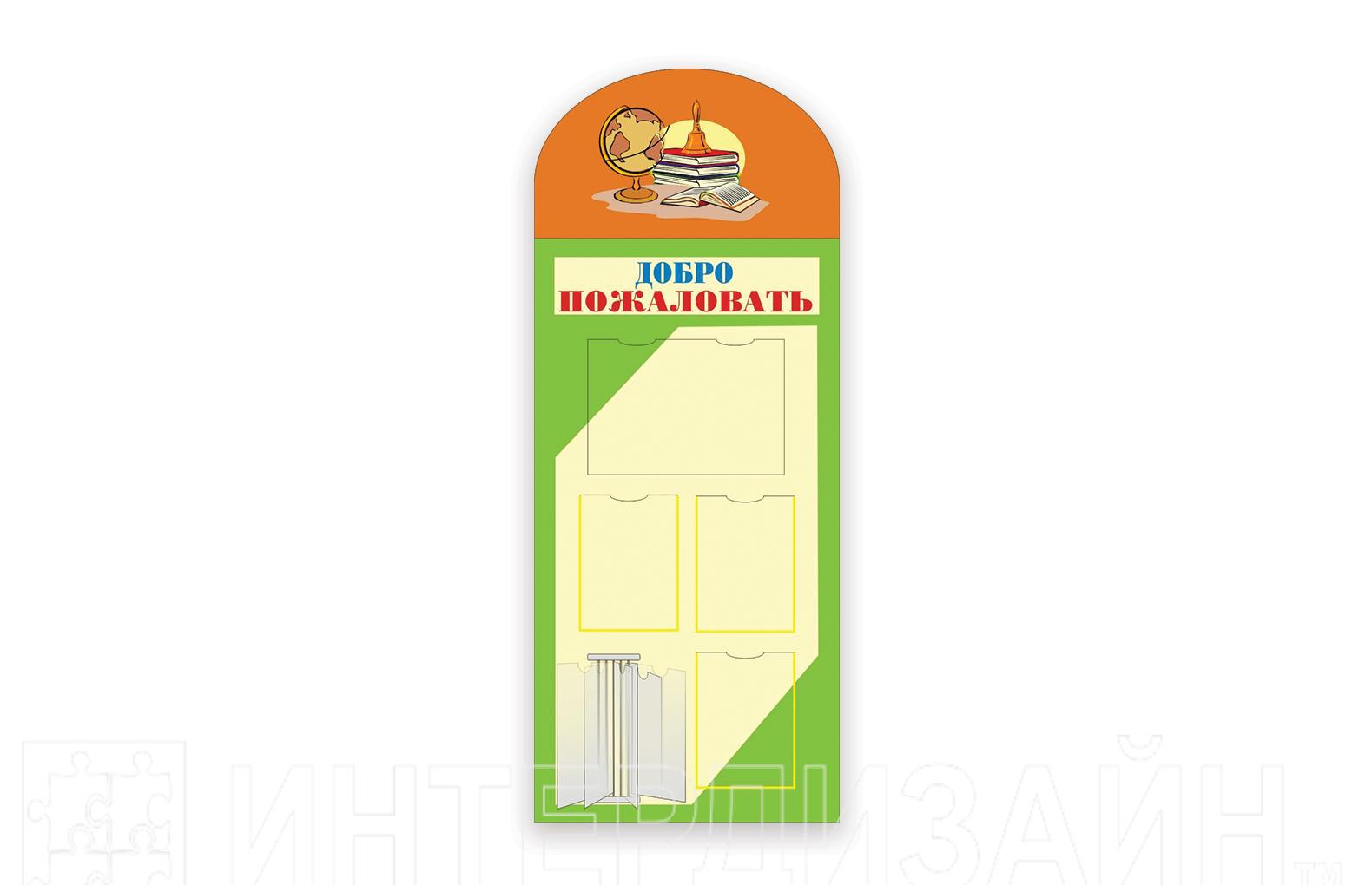 На стенде надежно закреплены: карман А3 формата, 3 кармана А4 формата и стенд-книжка на 5 файлов А4.