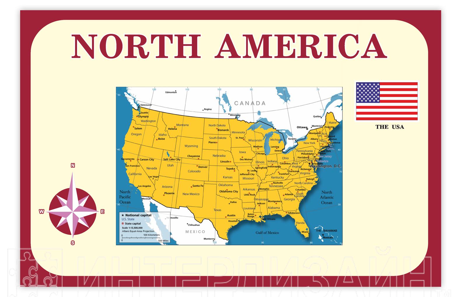 Стенд "North America" - это географическая карта данного материка, представленная на английском языке.