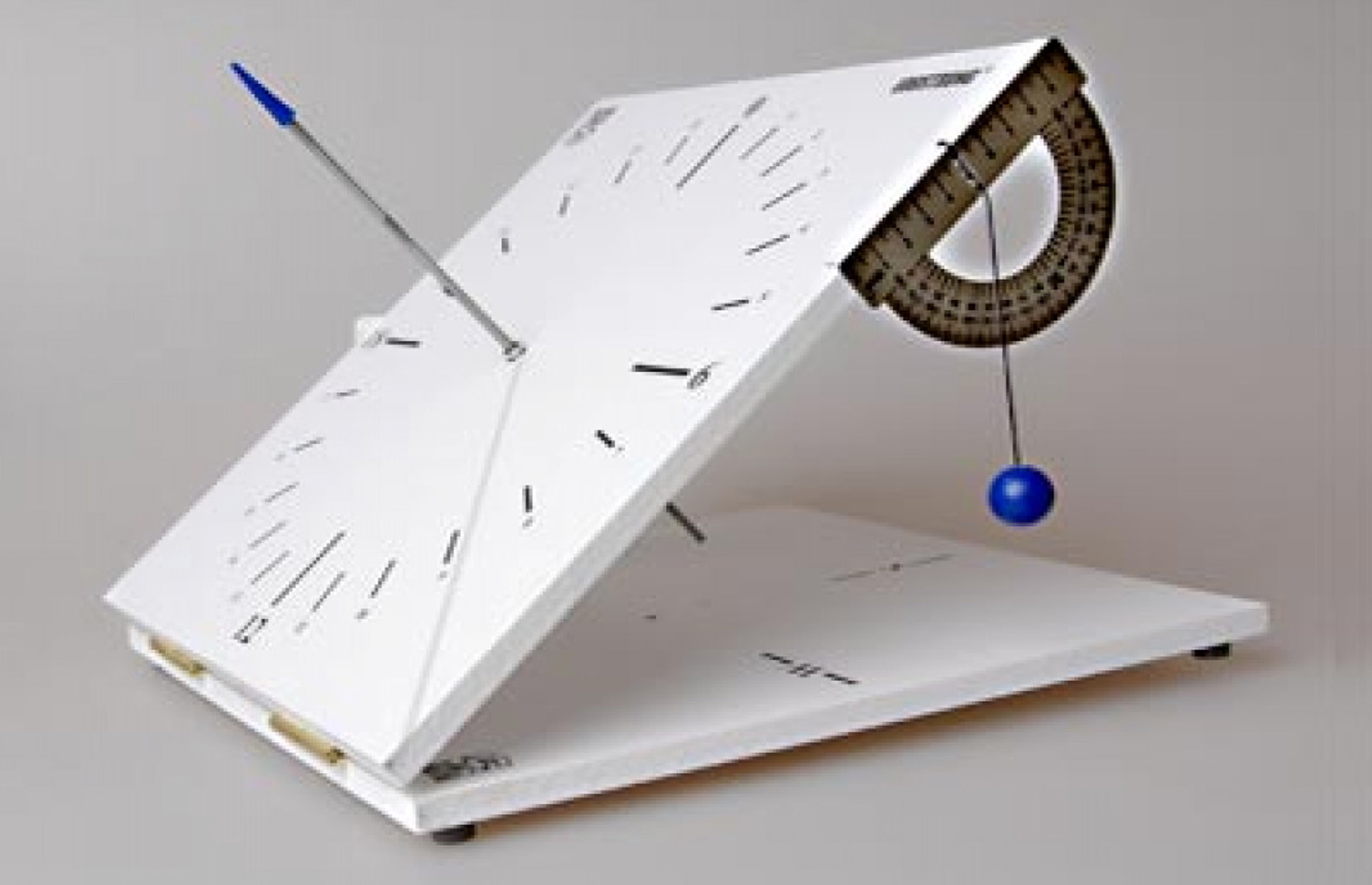 Комплектация: циферблат на основании (снабжен механизмом, позволяющим менять угол его наклона к основанию) – 1 шт., стержень со стрелкой – 1 шт., транспортир с отвесом – 1 шт., компас – 1 шт., руководство по эксплуатации – 1 шт.