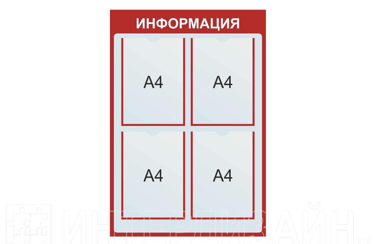 В комплекте:стенд, 4 кармана А4, фурнитура для крепления