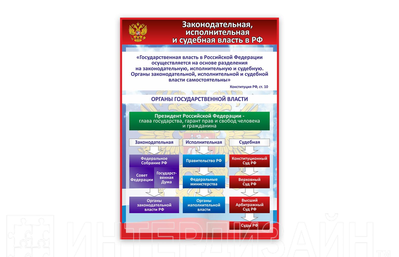 Стенд "Законодательная, исполнительная и судебная власть в РФ" - Описание