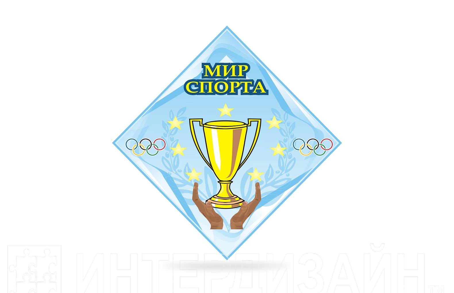 Стенд Мир спорта с нарисованным кубком, стенд для спортивного уголка кабинета физкультуры. Имеет форму ромба. Входит в полный комплект оформления кабинета физкультуры - спортзала, можно приобрести отдельно от комплекта.