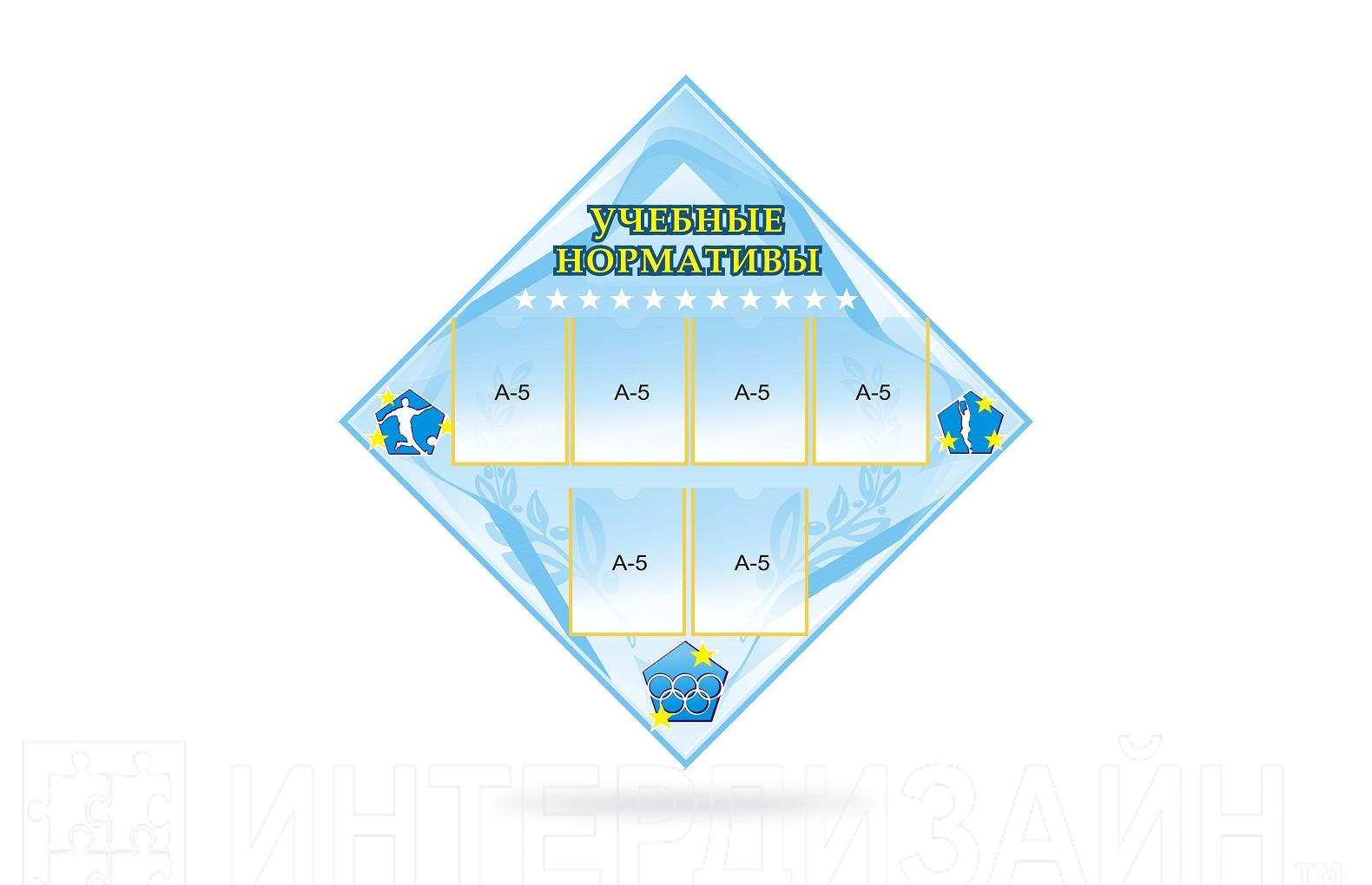 Стенд Учебные нормативы - информационный стенд для размещения информации на листах формата А5. Здесь можно разместить информацию о нормативах для различных классов. Входит в полный комплект стендов для школы, спортивного зала, кабинета физкультуры, можно приобрести отдельно от полного комплекта.