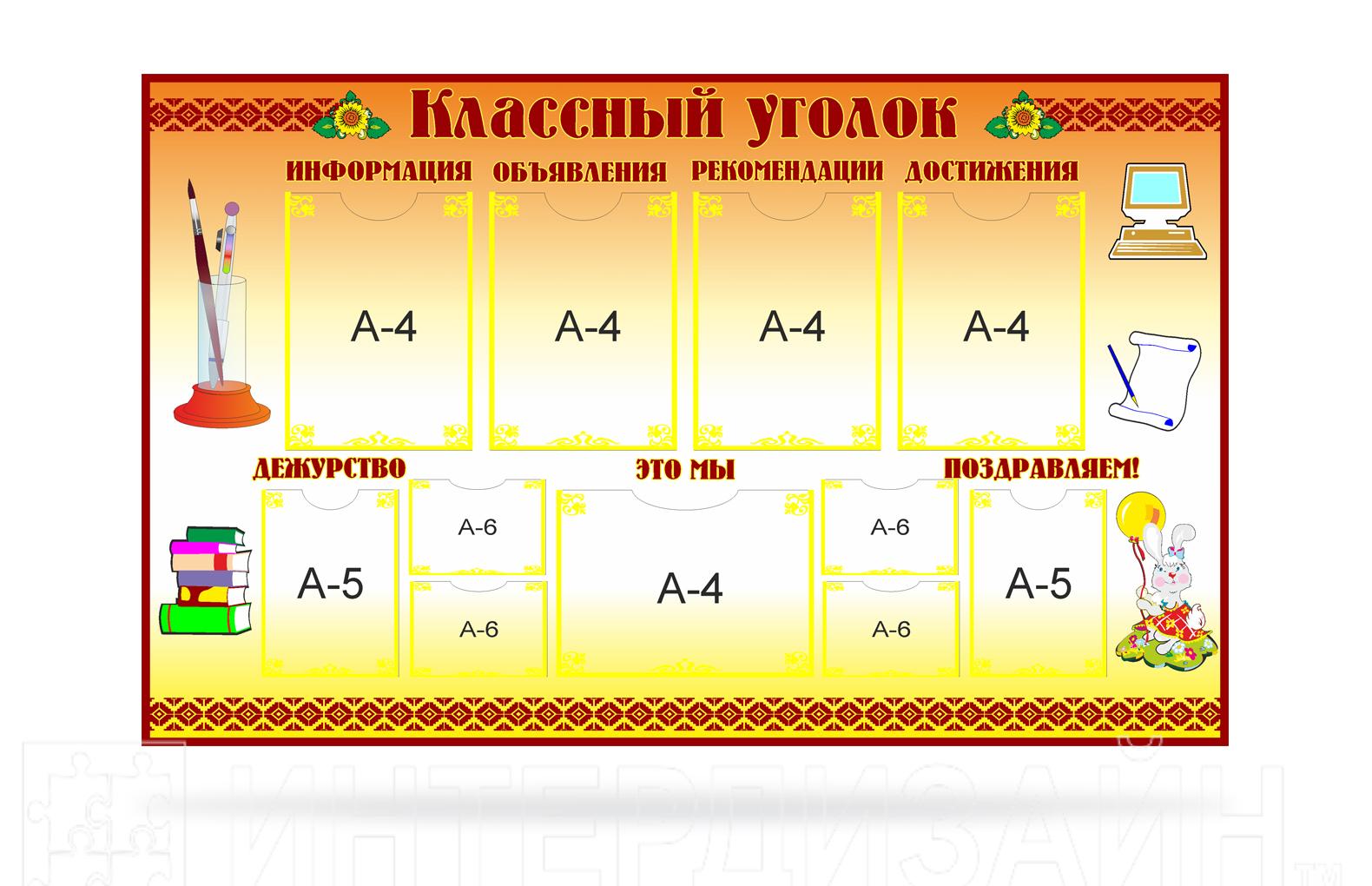 Закажите красивый классный уголок по индивидуальному заказу, наши дизайнеры помогут в реализации ваших фантазий в реальность!