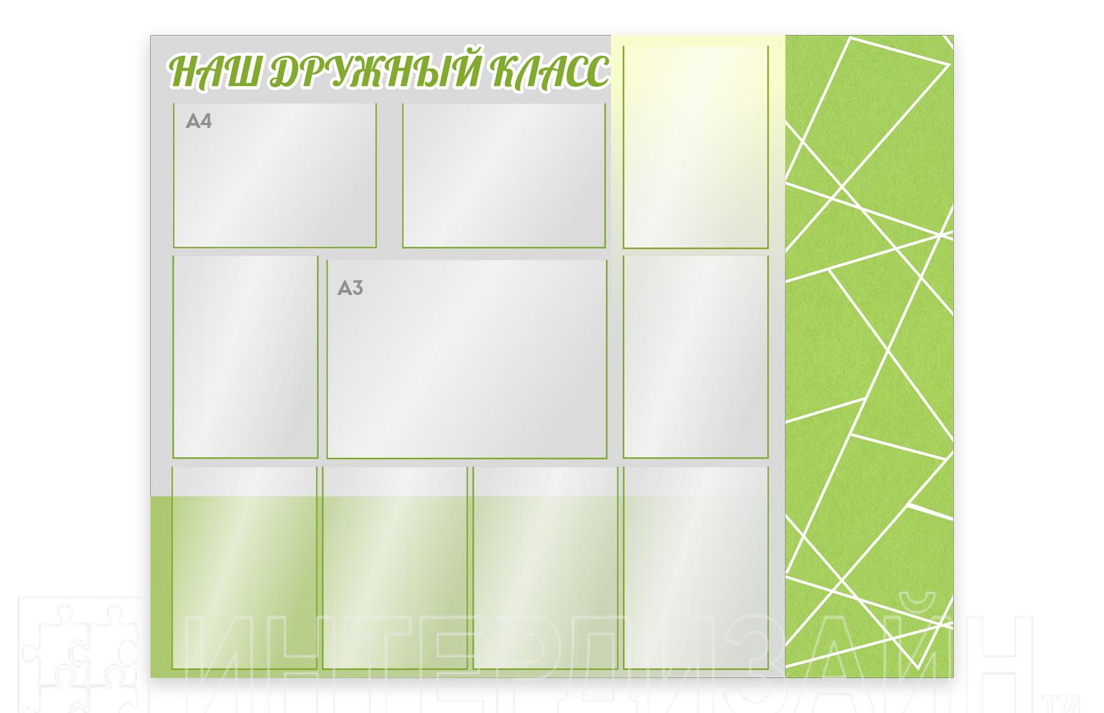 В комплекте:стенд с карманами и войлоком: А4-9 шт., А3- 1шт., фурнитура для крепления