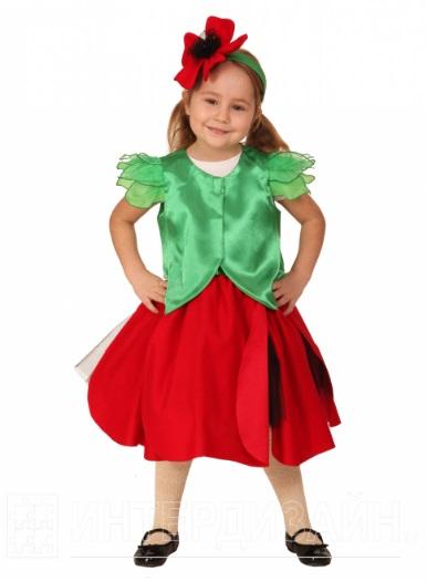 Детский карнавальный костюм Мак для девочки состоит из юбочки с многочисленными юбками-лепестками, жилетки и ободка с цветком ручной работы.