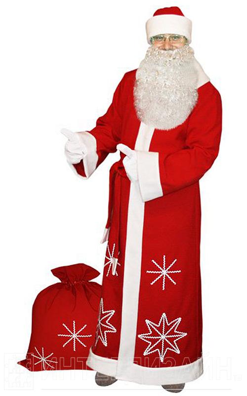 Костюм Деда Мороза Белые Снежинки Красный с бородой - Отзывы
