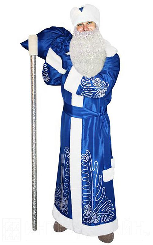 Костюм Деда Мороза снежинка (синий) с бородой и посохом - Отзывы
