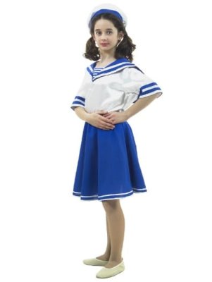 Детский и подростковый карнавальный костюм Морячка - это романтический образ. Расклешенная синяя юбка очень эффектно смотрится на контрасте с белой рубашкой. Наряд идеально подойдет для коллективных выступлений, а также для костюмированных праздников. Рубашка выполнена с имитацией тельняшки и воротника-гюйса.