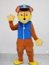 МатериалыОбъёмная голова- каркас, обшитый флисом коричневого, жёлтого и розового цветов, хлопковая подкладка, смотровая область в глазах, дополнительные детали: головной убор - поролон, обшитый флисом белого и синего цвета. Комбинезон - флис коричневого цвета, хлопковая подкладка. Футболка - флис синего цвета. Перчатки - флис жёлтого и розового цвета, хлопковая подкладка. Обувь - поролоновый каркас, обшитый флисом жёлтого цвета, хлопковая подкладка, полиуретановая подошва.