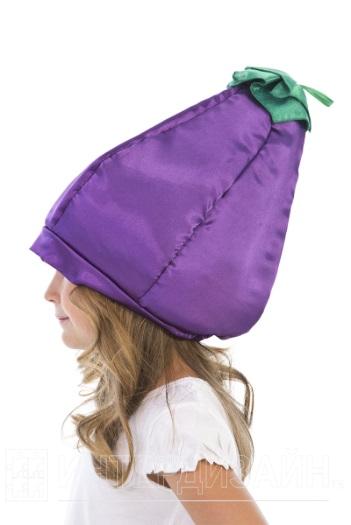 Спелый восточный овощ баклажан является частым гостем праздника Урожая и утренника в детском саду. Сам овощ баклажан имеет очень красивый «баклажанный» цвет и пышные формы. Вот такая и получилась карнавальная шапочка «Баклажан». Она выполнена из крепсатина. Аппетитная форма воссоздана благодаря вставленному внутрь синтепону. Шапочка снабжена подкладкой из хлопчатобумажной ткани и украшена на самом кончике листиком из крепсатина. Универсальный размер регулируется резинкой. Шапка легкая и носить ее очень удобно. Костюм баклажан подойдет как мальчикам, так и девочкам.