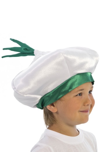 Карнавальная шапочка «Чеснок» разработана специально для праздника Урожая в детском саду. Шапочка выполнена из белого крепсатина и имеет традиционную «пухлую» форму чеснока. Из верхушки торчит зеленый хвостик. Основание шапочки зеленого цвета. Сзади вставлена резинка. Внутри шапочка проложена тонким слоем синтепона для придания ей дополнительнго объема. Благодаря подкладке из бязи шапочку удобно носить. Костюм чеснок подойдет как мальчикам, так и девочкам.