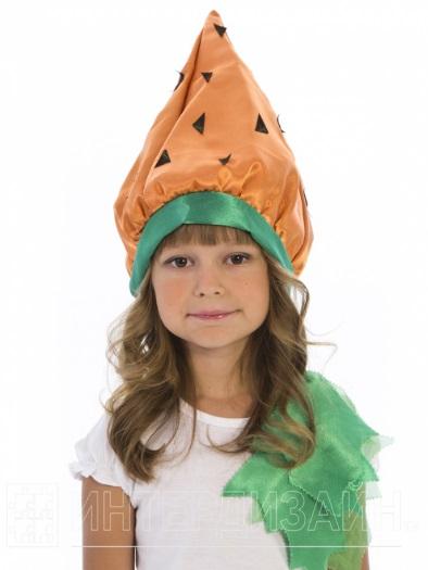 Для приготовления винегрета на празднике Урожая в детском саду не обойдись без морковки. Именно она становится важным героем и костюм морковки тоже должен быть подобающим. Карнавальная шапочка «Морковка» выполнена из крепсатина, поэтому она красиво переливается и имеет очень интересную и сложную фактуру. Шапочка украшена зелеными листиками из органзы и крепсатина. Для создания объема шапочка подбита синтепоном, а для обеспечения комфортности при носке посажена на бязь. Размер шапочки универсальный, благодаря вставленной резинке. Костюм морковки подойдет как мальчикам, так и девочкам.