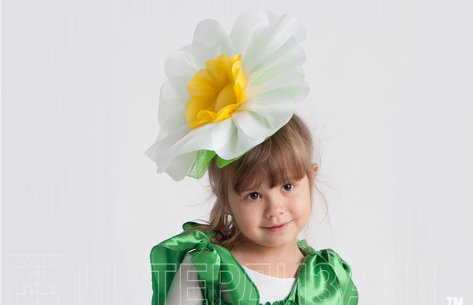 Если выбор нового амплуа для вашей дочери остановился на образе прекрасного и нежного цветка ромашки, то без очаровательной шапочки «Ромашка», вам просто не обойтись.
