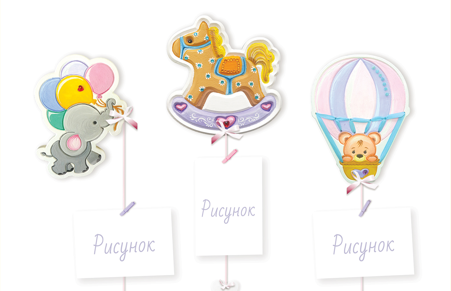 Размер:"Веселый Слоник"13х17см, "Воздушный шар"17х16см, "Сказочная Лошадка" 15х16см.