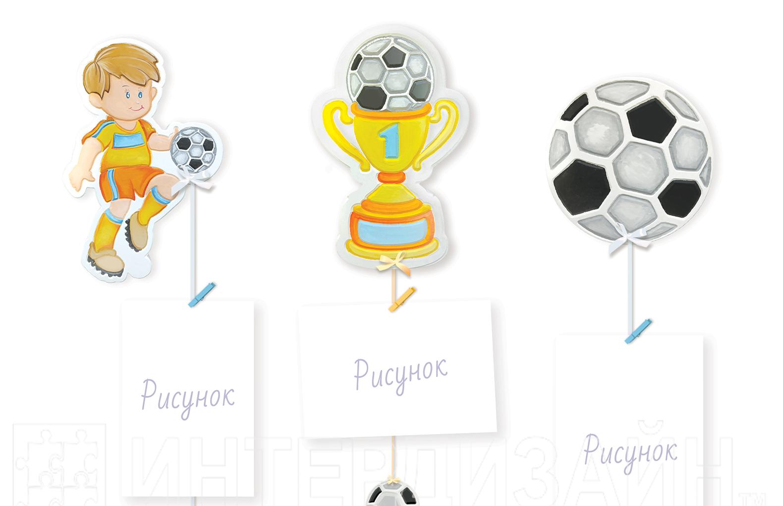 Размер:"Футболист" 12х19см, "Футбольный кубок" 12х19см, "Футбольный мяч" 10х10см.