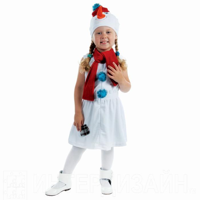 Детский карнавальный костюм "Снеговик с красной заплаткой", велюр, рост 98 см, цвет белый - Отзывы