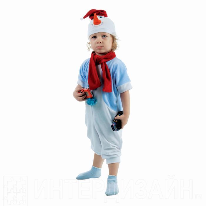 Детский карнавальный костюм "Снеговик в голубом жилете", велюр, комбинезон, шарф, шапка, рост 68-92 см - Описание