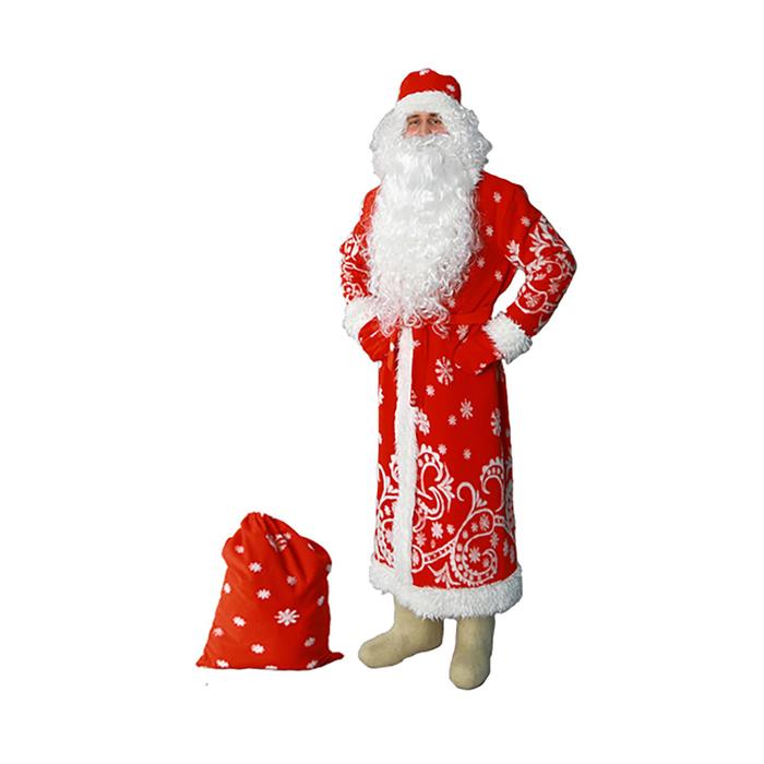 Карнавальный костюм "Дед Мороз", шуба, шапка, варежки, пояс, мешок, р-р 52-54, рост 182 см - Отзывы