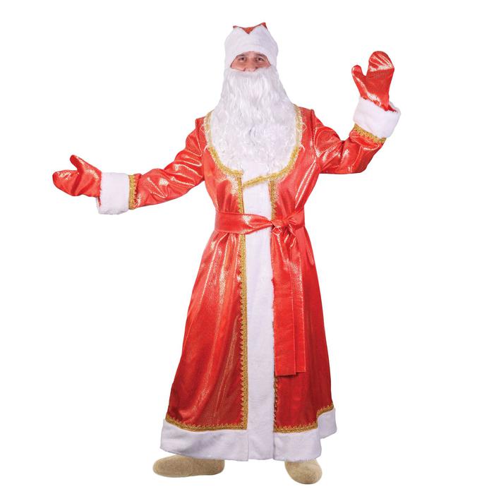 Карнавальный костюм Деда Мороза "Золотой завиток", атлас, шуба, шапка, пояс, варежки, борода, мешок, р-р 52-54, рост 176-182 см 2763346
