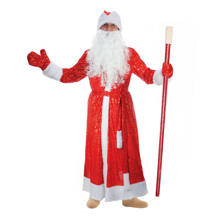 Карнавальный костюм Деда Мороза "Золотые снежинки", шуба, пояс, шапка, варежки, борода, р-р 56-58, рост 176-182 см, мех МИКС - Описание