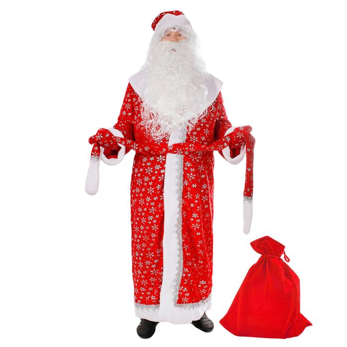 Карнавальный костюм "Дедушка Мороз", плюш, р-р 54-56, цвет красный 1026126