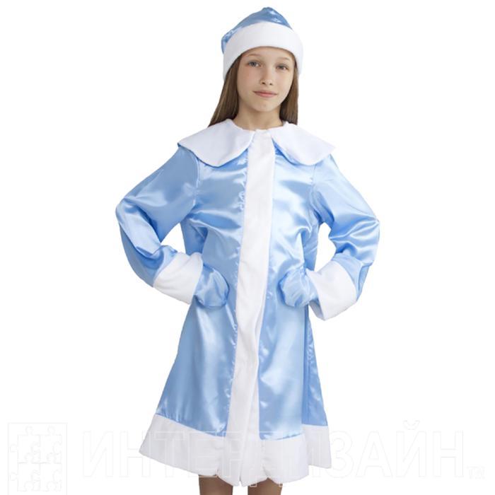 Карнавальный костюм "Девочка Снегурочка", атлас, шапка, шуба, варежки, рост 122-134 - Описание