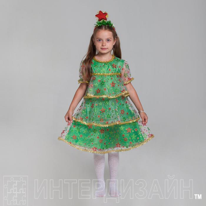 Карнавальный костюм "Ёлочка в звёздах", органза, платье, ободок, р-р 30, рост 110-116 см - Описание