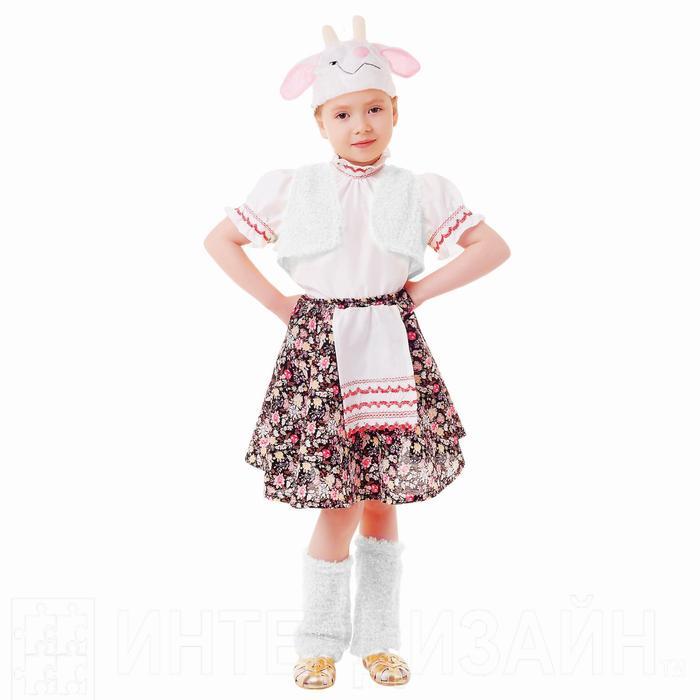 Карнавальный костюм "Овечка", блузка, юбка с фартуком, меховой жилет, шапка, гетры, р-р 60, рост 110-116 см 1422586