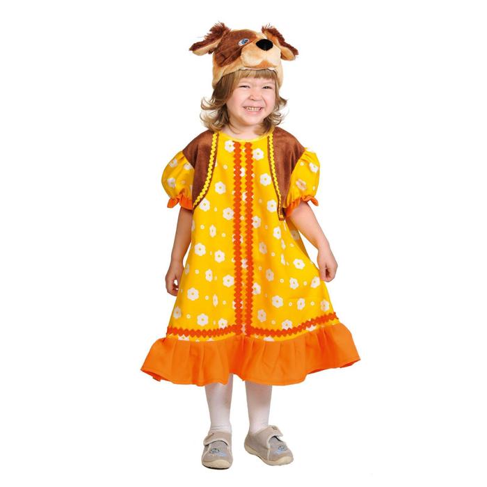 Карнавальный костюм "Собачка Жучка", сарафан с жилетом, маска, рост 98-128 см - Описание