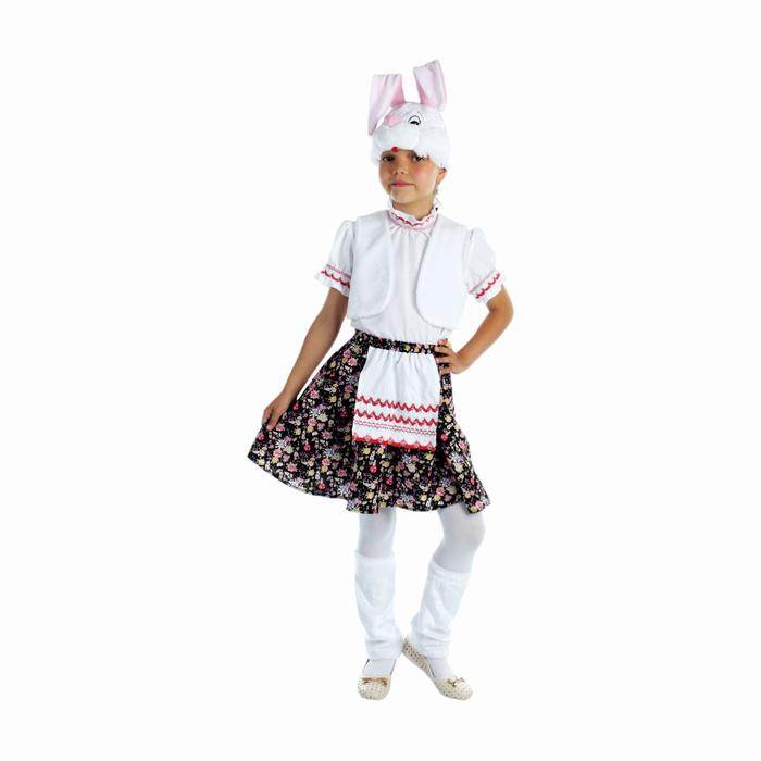 Карнавальный костюм "Зайка", блузка, юбка с фартуком, меховой жилет, шапка, унты, р-р 60, рост 110-116 см 1537836