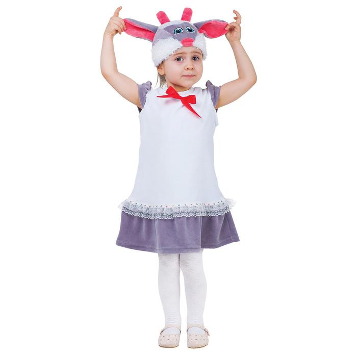 Карнавальный костюм для девочки от 1,5-3-х лет "Овечка с бантом", велюр, сарафан, шапка - Отзывы