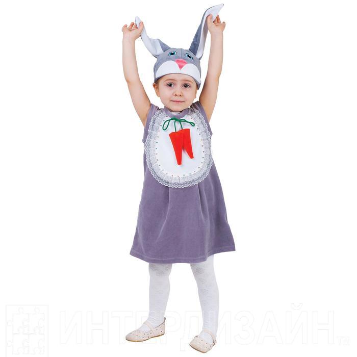 Карнавальный костюм для девочки от 1,5-3-х лет "Зайка с грудкой", велюр, сарафан, шапка - Отзывы