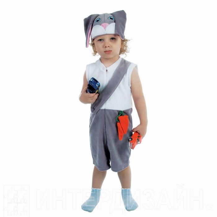 Карнавальный костюм для мальчика "Заяц" от 1,5-3-х лет, велюр, комбинезон, шапка 1392536