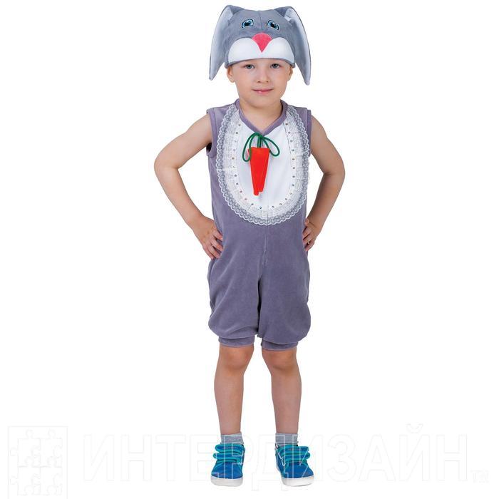 Карнавальный костюм для мальчика от 1,5-3-х лет "Заяц с грудкой", велюр, комбинезон, шапка - Отзывы